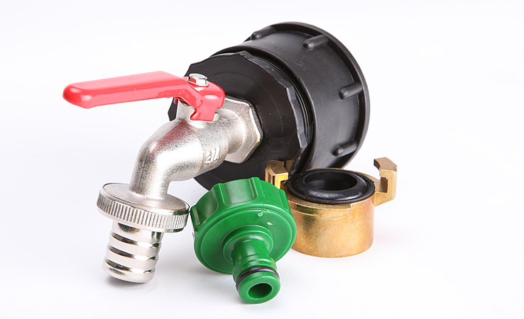 - IBC Adapter mit Messing Kugelhahn, 3/4", incl. Hahnstück und Schnellkupplung